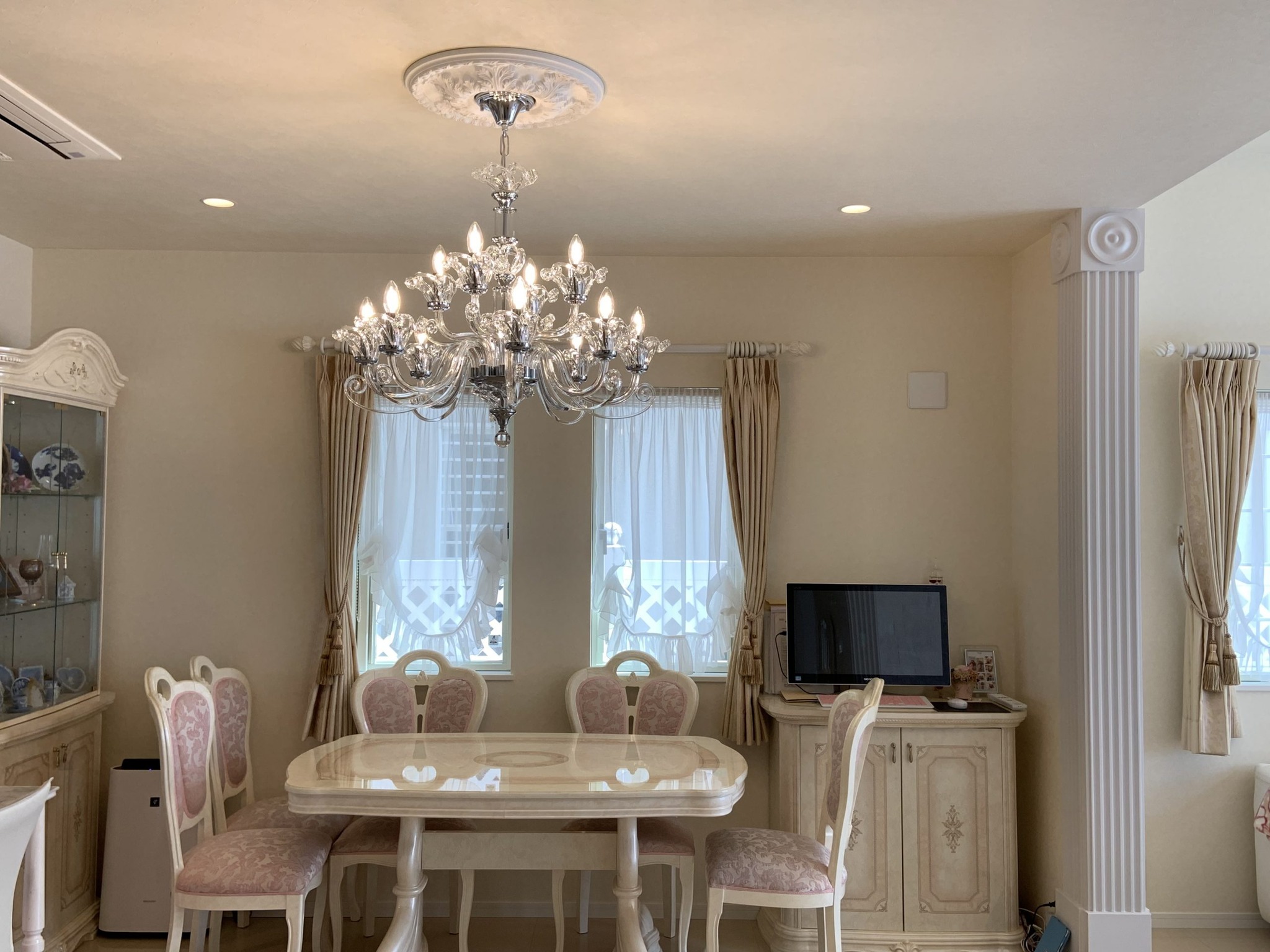 輸入家具と合わせてシャンデリアも購入頂きました。白家具とシルバーメッキされたクリスタルシャンデリアはとても映えます。